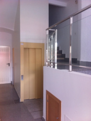 Obra civil para la instalación de ascensor y ejecución de nueva escalera en C/ La Bañeza, 17. Subcontratados por la empresa Thyssenkrupp Elevadores, S.L.U.